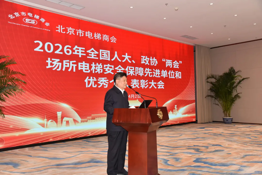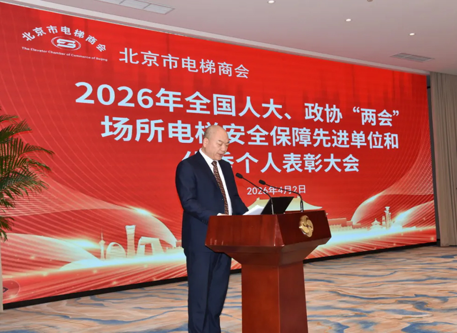 北京市电梯商会执行会长、高级工程师缪步升在讲话中,首先向受表彰的单位和个人致以热烈祝贺和崇高敬意。他强调,要强化政治引领,将党建与安全工作深度融合;压实主体责任,紧扣即将实施的《特种设备使用管理规则》(TSG08—2026),新规并非仅针对使用管理单位,对电梯企业提出了更高标准、更严要求、更重责任,切勿存在认知误区。他还就本市国债支持电梯更新项目施工安全提出四项具体要求:一是认真履行签约承诺;二是严格保证产品质量与安装质量;三是施工安全;四是妥善协调与街道、居民的关系,确保高质量完成更新任务。同时,他希望大家吸取以往教训,认真总结成功范例经验,坚决打好今年安全生产翻身仗。最后,他宣读了“关于2026年国债支持电梯更新履约承诺”第一批企业名单,要求承诺企业必须信守诺言,诚信经营。如一旦发现未能履约承诺的企业,且影响行业声誉较大的,北京市电梯商会将在第一时间予以行业内通报,直至予以除名、追究主体责任,切实维护行业信誉。